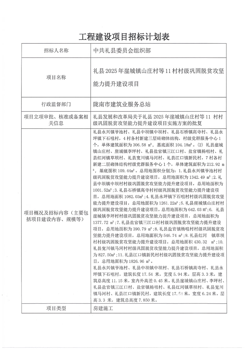 禮縣2025年崖城鎮(zhèn)山莊村等11村村級鞏固脫貧攻堅能力提升建設項目