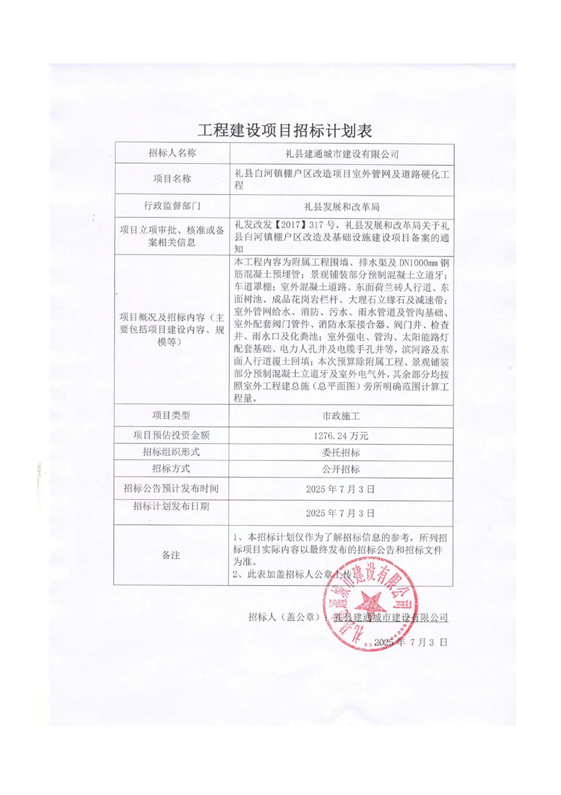 禮縣白河鎮(zhèn)棚戶(hù)區(qū)改造及基礎(chǔ)設(shè)施建設(shè)項(xiàng)目