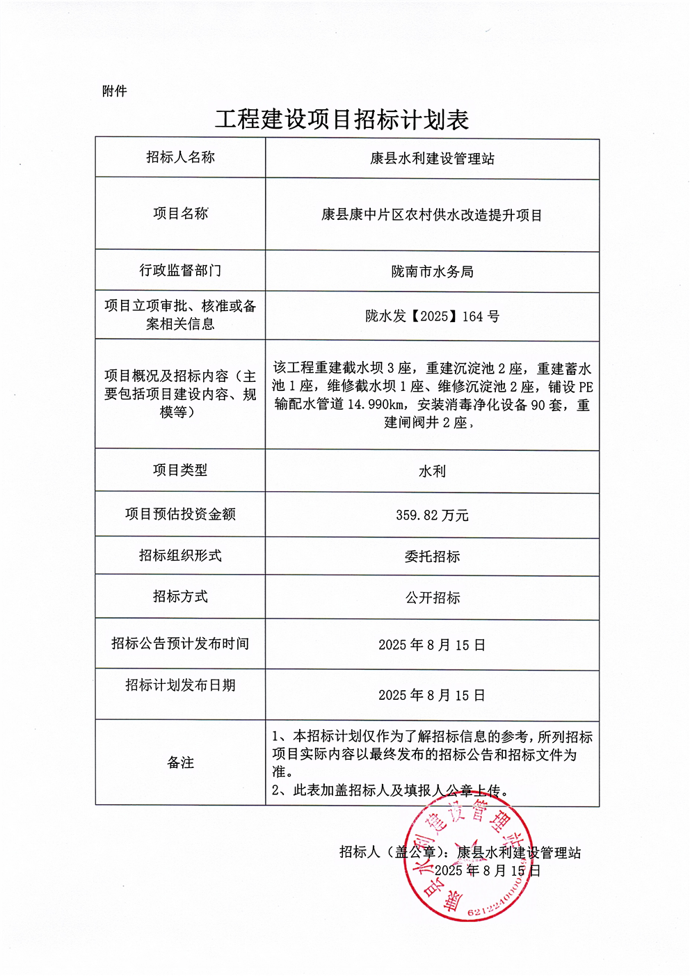康縣康中片區(qū)農(nóng)村供水改造提升項目