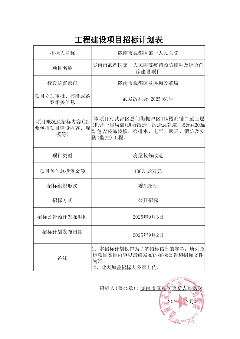 隴南市武都區(qū)第一人民醫(yī)院疫苗預防接種及綜合門診建設項目