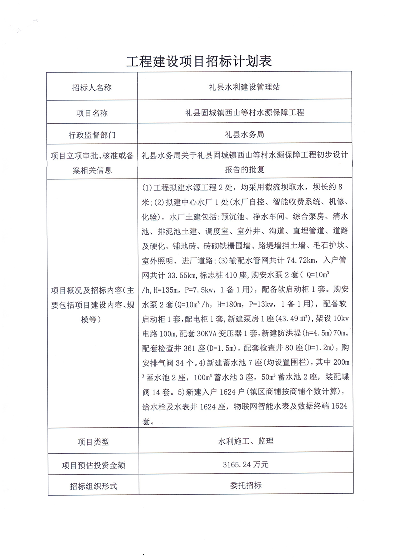 禮縣固城鎮(zhèn)西山等村水源保障工程