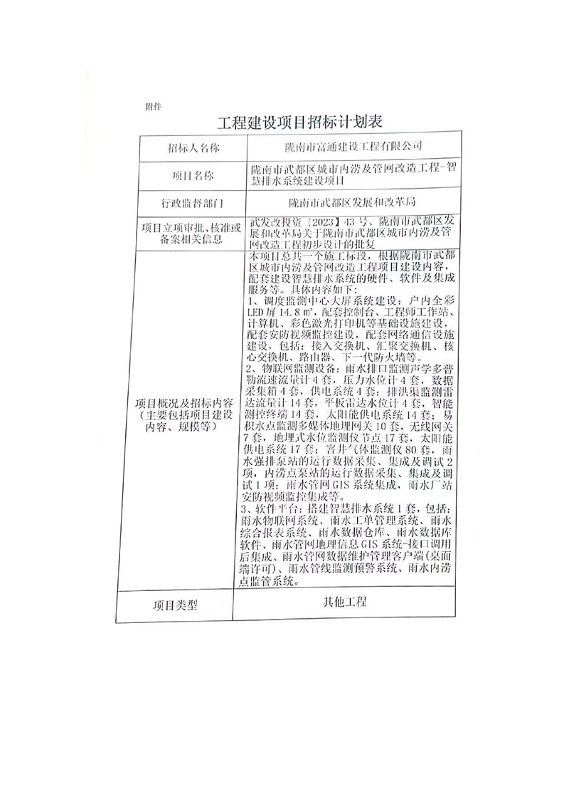 隴南市武都區(qū)城市內澇及管網改造工程-智慧排水系統(tǒng)建設項目